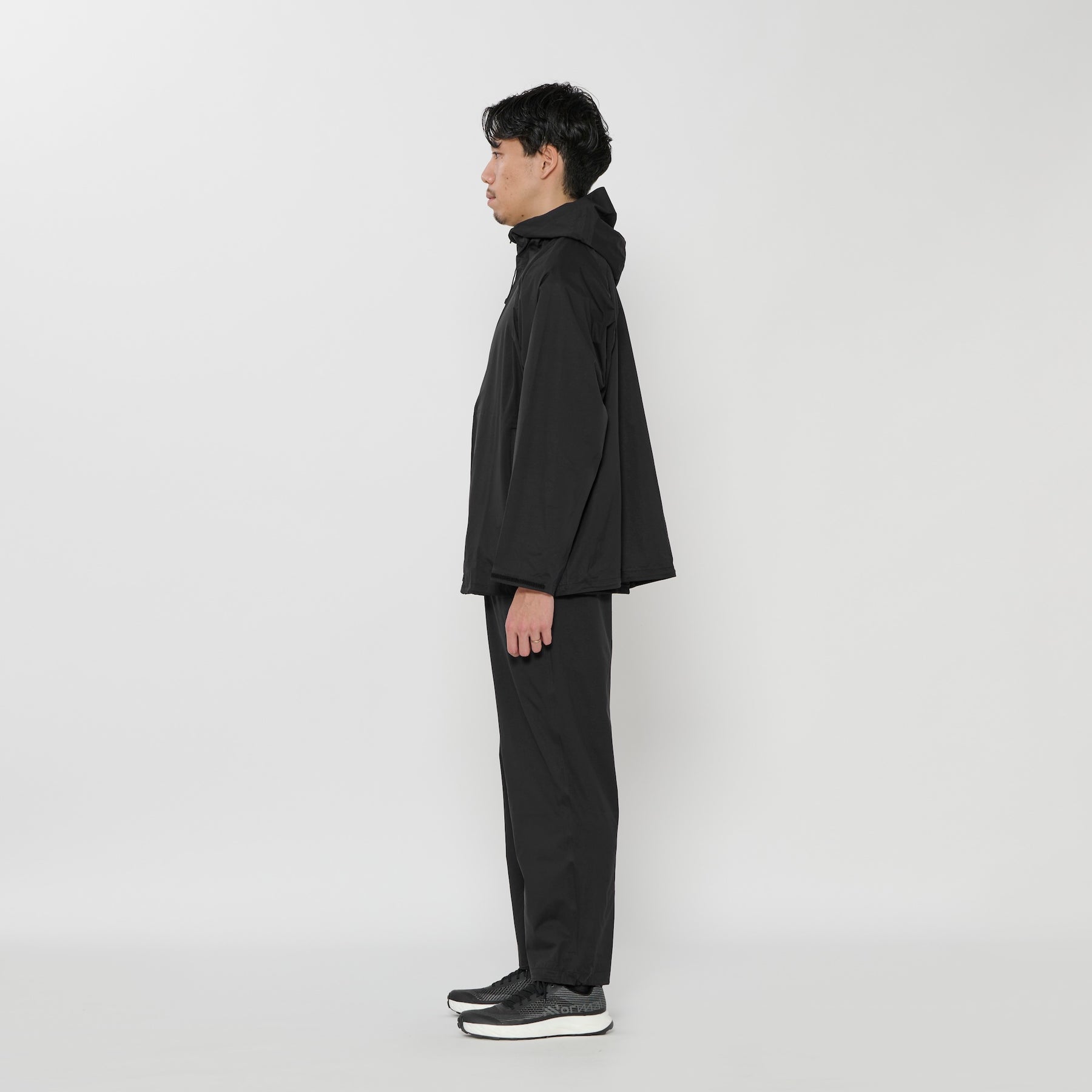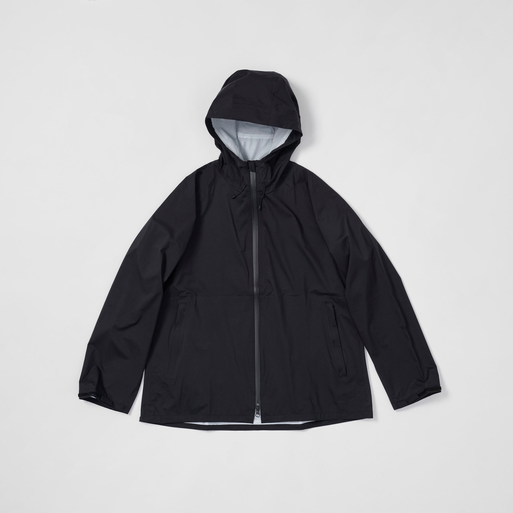 2.5-layer rain jacket with fluorine-free water repellency applied to recycled nylon. We've crafted this jacket with a relaxed silhouette using material boasting a waterproof rating of 20,000mm and breathability of 20,000g. With this, you won't need an umbrella anymore.