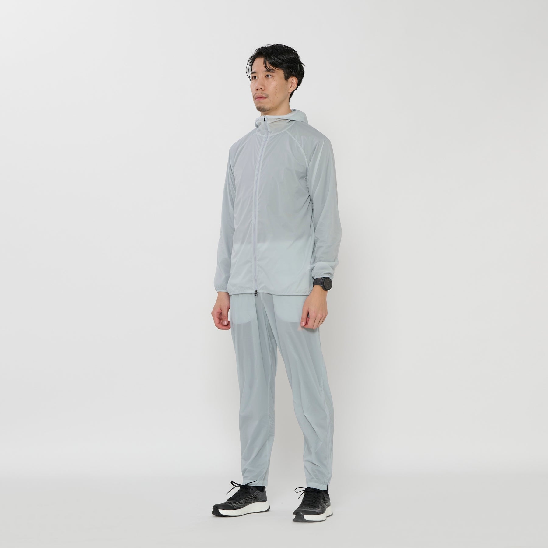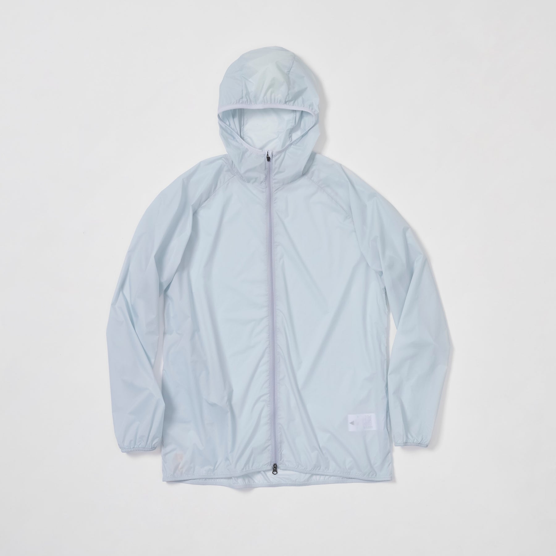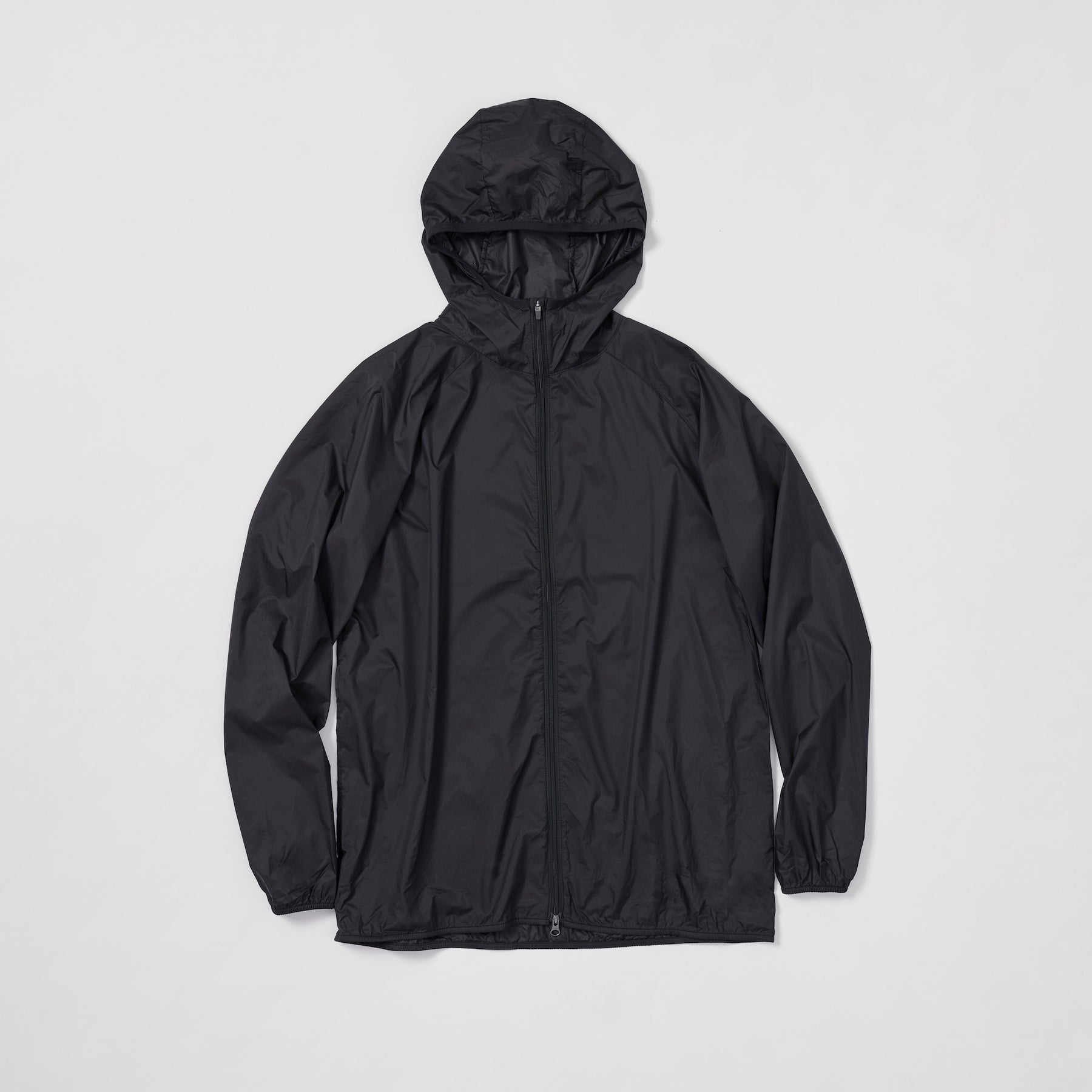 A double-zip packable wind hoody made with lightweight 13D ripstop nylon fabric. Weighs 81g in size M.