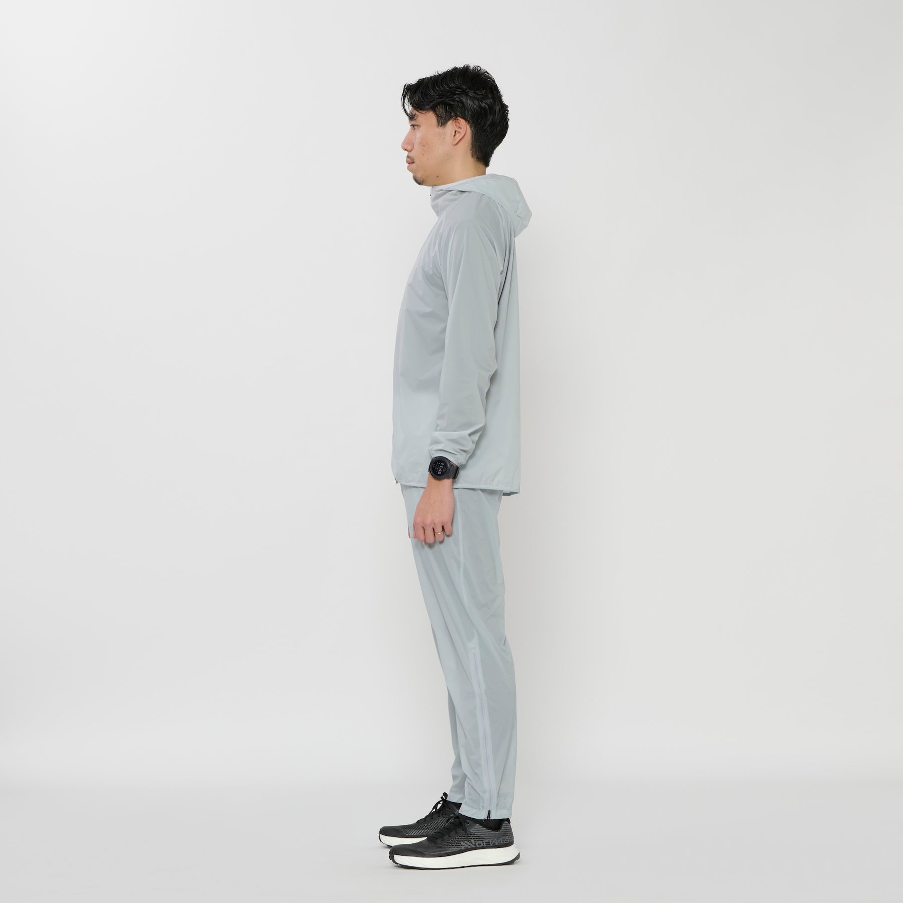 Whether you're trail running, hiking, traveling, or simply going about your daily life, the Essential Packable Hoody is designed to perform in every situation. Made with 13D (denier) recycled nylon, it strikes the perfect balance between lightweight comfort and reliable wind protection. Thanks to its packable design, the hoodie can be conveniently stored in its own waist pocket, making it an ideal companion that easily fits into your backpack—always ready when you need it.